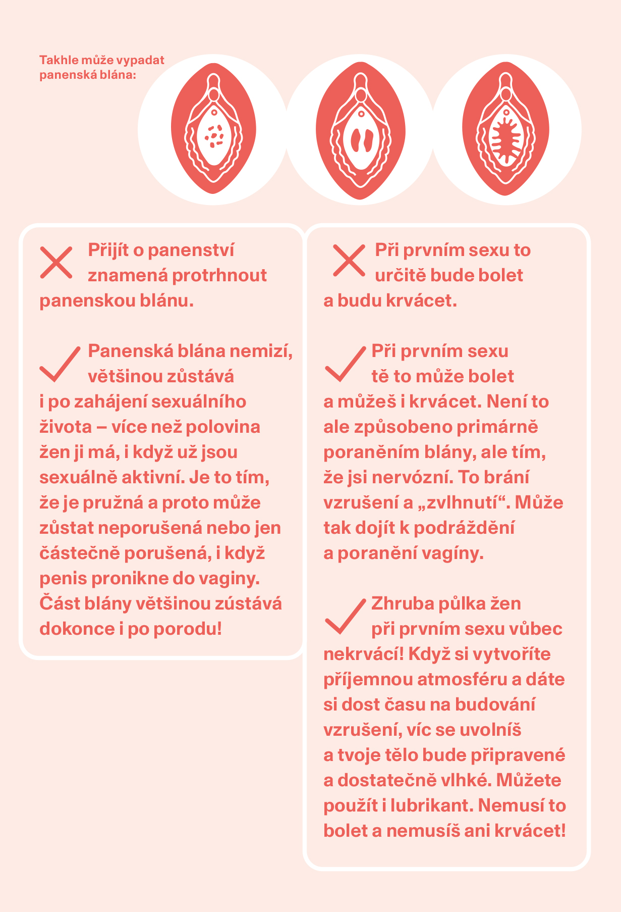 Tato série infografik přináší srozumitelné informace o menstruaci, intimním zdraví a návštěvě gynekologie. Vysvětluje například menstruační cyklus, výběr menstruačních pomůcek nebo časté mýty spojené s prvním sexem a tělesnými změnami.